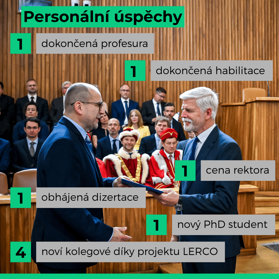 Úno92026Aktuality Sdílejte Share on XShare on X Pin itShare on Pinterest Share on FacebookShare on Facebook Share on LinkedInShare on LinkedIn Spolupráce s University of Pécs19. 2. 2026Nová publikace – „Lipid assemblies mediating the fusion of photosystem-II enriched membranes characterized by DPH (1,6-diphenyl-1,3,5-hexatriene) fluorescence and fluorescence anisotropy lifetimes“9. 2. 2026PF 202622. 12. 2025Nový člen skupiny – Dr. Kinga Ilona Böde19. 12. 2025