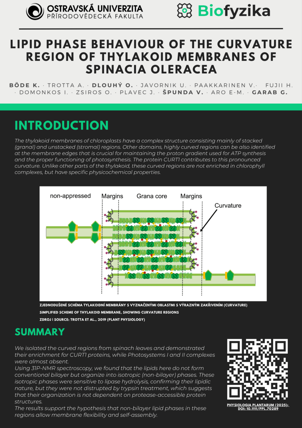 Members of the research team “Role of non-lamellar lipid phases in the structure and function of thylakoid membranes” published an article in journal Physiologia Plantarum. The study is entitled “Lipid phase behaviour of the curvature region of thylakoid membranes of Spinacia oleracea“.